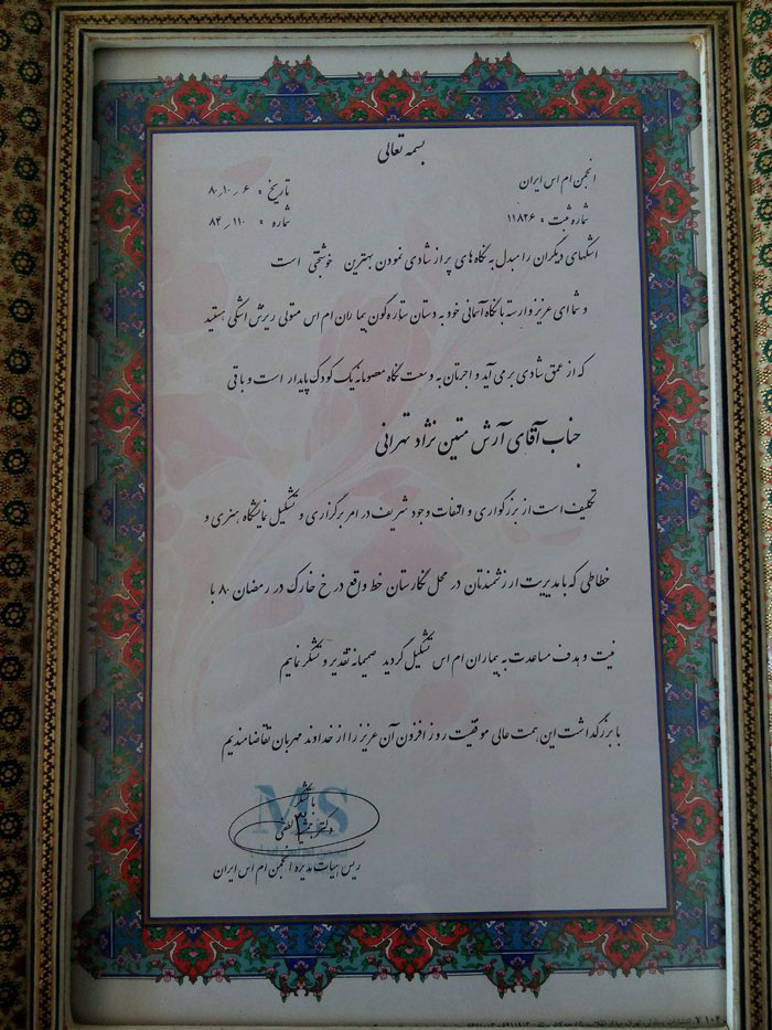 در اینجا بعضی از تقدیر نامه ها برای شماقابل مشاهده می باشند.